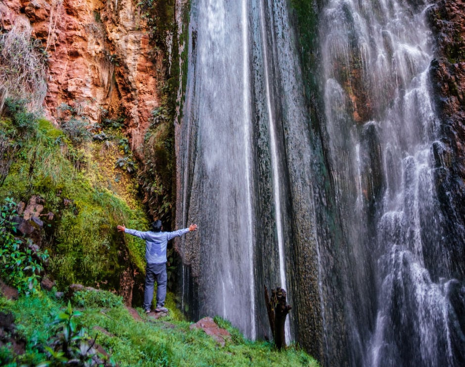 We started with a slow, steady climb to the Perolniyoc waterfall, where we took a break and enjoyed the view for a while. The waterfall is fed by the snow run-off from the mountains above and is over 330 feet in height. Our guide spoke of the significance of the waterfall to the Incan people and the area, explaining that it has fed the farmland below from a time predating the Incas.